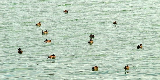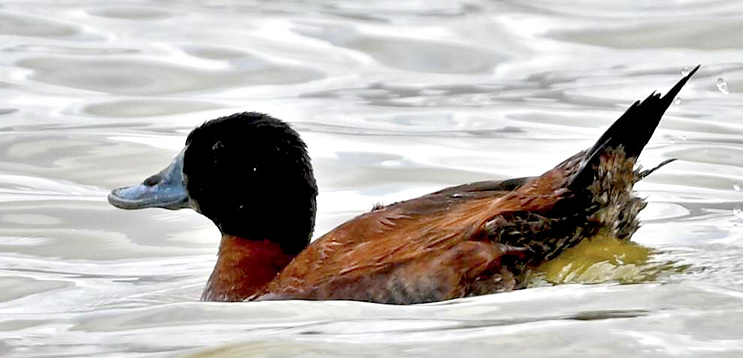 The 4th row photo was taken in Ngorongoro Crater, courtesy of Isaac Kilusu. The other photos were taken on the Momela Lakes in Arusha NP. Maccoa ducks have undergone a major decline in East Africa in recent years and are uncommon. Note the characteristic raised tails. |