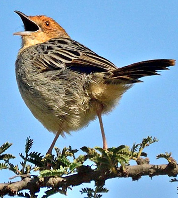 Lynes's cisticola has been separated recently from the wailing cisticola. It is found in northern Tanzania. The top and left 5th row photos (Arusha Highlands) are courtesy of Frank Priscus Shirima. The next two and the right 5th row photos (Oldonyo Sambu & Lengijave) are courtesy of Per Holmen. The 4th row bird was also seen in Lengijave. The bottom photo (Arusha) is courtesy of Amos Pampy Hardecker. The other photos were taken on the descent road into Ngorongoro Crater, courtesy of Paul Reed. |