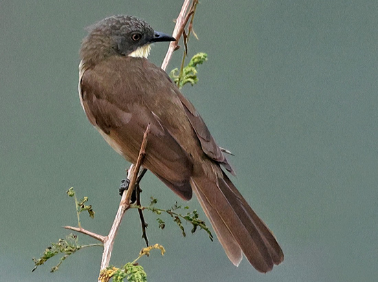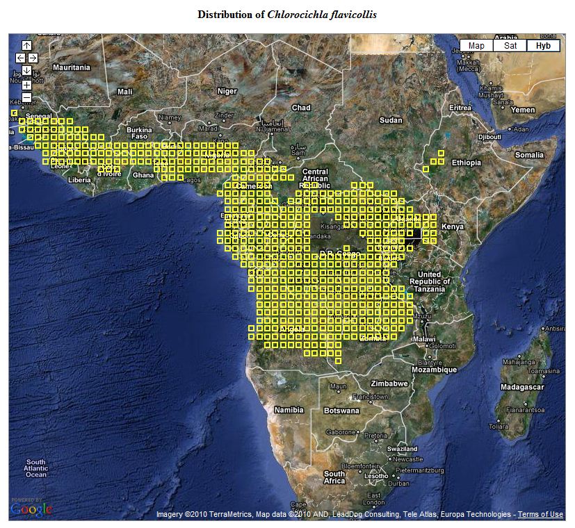 The range of the yellow-gorgeted greenbul, previously called yellow-throated leaf-love, includes western Tanzania where it may be seen in thickets and second growth forest. The upper two birds was photographed in Uganda, courtesy of Karine Van der Vurst. The 3rd row photo was taken in Rulindo (Rwanda), courtesy of Jason Anderson. The 4th and 5th row and left lower birds were seen in the Kakamega and Minziro forests, courtesy of Per Holmen; the right lower, on Lukuba Island, courtesy of Valéry Schollaert. |