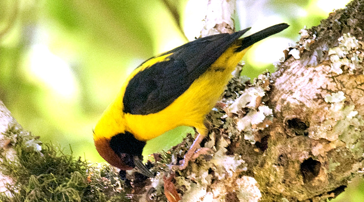 The brown-capped weaver is uncommon in the montane forests of northern and northwestern Tanzania. The male has a diagnostic brown cap. The upper 4 photos of a female were taken in the Ng'arwa Forest. The right 5th row male was in the Castle Forest-Kenya, courtesy of Per Holmen; the bottom photos, Bwindi Impenetrable Forest NP-Uganda, courtesy of Karine Van der Vurst; the others, Loliondo.