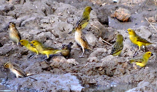 The parasitic weaver is parasitic on cisticolas and prinias. The upper two photos were taken in Mikumi NP, courtesy of Nik Burrow. The 3rd row bird was photographed in Pilanesberg, So. Africa and the right 4th row bird, in the Masai Mara, both courtesy of Karine Van der Vurst. The left lower photo is courtesy of Isaac Kilusu. |