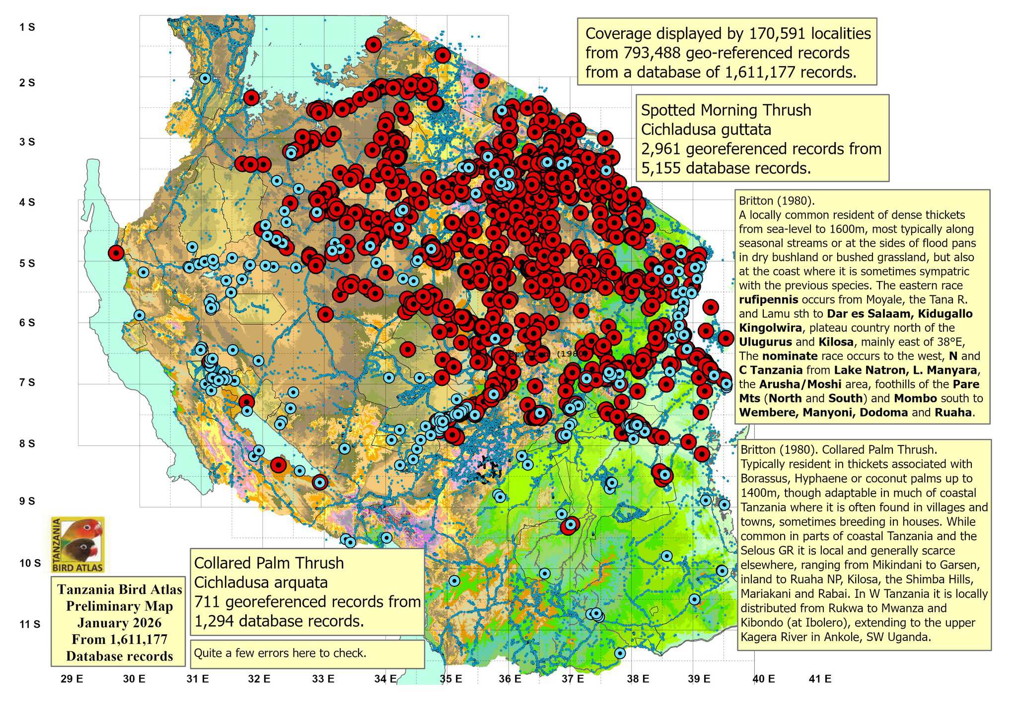 TBA=Tanzania Bird Atlas maps*