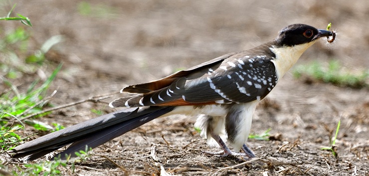 The adult great spotted cuckoo on the upper left was photographed at Ndutu (1-01). The right 2nd row photo is courtesy of Chuck Derby. The upper photo (Tarangire, 1-22) and the center photo of an immature (Naabi gate, 5-20) are courtesy of Per Holmen. The bottom photo was taken in the Serengeti (12-16), courtesy of Linda Bushman; click it to see 15 enlargements including a flight photo, a juvenile and a sub-adult.