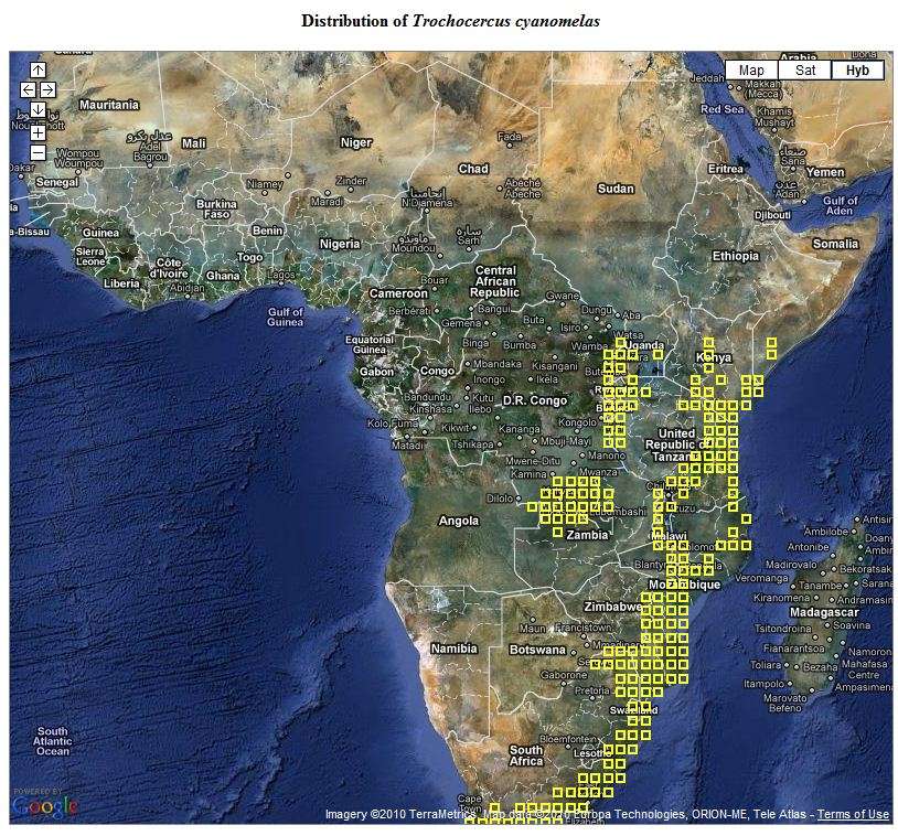 The upper adult was seen in the Amani forest, courtesy of Per Holmen. The 2nd row, 3rd row and left lower juveniles were in Arusha, the Meru Forest and Rubondo NP, all courtesy of Amos Pampy Hardecker; the 4th row juvenile, in Chem Chem, courtesy of Riaan Marais; and the right lower adult, Njoro FR, courtesy of Mike Peterson. |