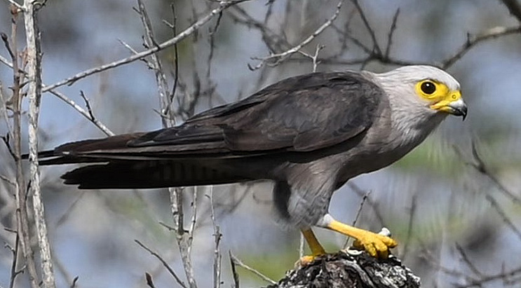 Note the light grey head and the barred tail, which distinguish Dickenson's kestrel from the grey kestrel. It forages from high, open dead trees as in some of these photos. The top photo was taken on Pemba, courtesy of Per Holmen. The 2nd row photo (Mkomazi) is courtesy of Kim Axmann; the 3rd row, Nyerere NP, is courtesy of Isaac Kilusu. The left 4th row photo was taken in Selous; right 4th row, Mikumi, courtesy of Karine Van der Vurst. The adult in flight was photographed in Mikumi NP, courtesy of Jan van den Hombergh. The right 5th row photo is of a Dickinson's and a grey kestrel, also in Mikumi, courtesy of Adam Kennedy. The right 6th row photo of a juvenile (note blue-green skin around the eye) was taken in Selous, courtesy of Cameron Raffan. The other photos of juveniles were taken in Selous, courtesy of Paul Oliver. |