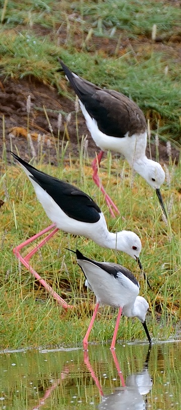 The black-winged stilt is common throughout Tanzania on salt and fresh water. The male has a fully black back while the female is partially brown. The adult and immature were seen at Tarangire (11-14). The nest was photographed at Bagamoyo (5-12), courtesy of Riaan Marais. The video was filmed at Lake Burunge (11-12). The other photos were taken at Nanja Dam, Ndutu, Lake Manyara, TPC-Moshi and Arusha NP. Click the lower photo to see enlargements including another nest, chicks, juveniles and immatures. |