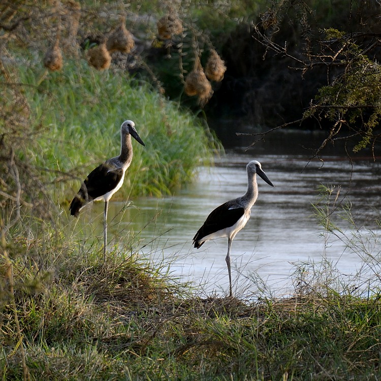 The woolly-necked stork can be seen along the coast, in lagoons, swamps and waterways throughout the country. It was formerly considered a subspecies of the Asian woolly-necked stork, C. episcopus, but was split as a distinct species by the International Ornithological Congress in 2023 on the basis of its range and morphological differences.The upper photo (Pangani, 10-16) is courtesy of Jiri Haureljuk; the 2nd row photo (Mkomazi, 2-17), courtesy of Stuart Webb; 4th row flight photo (Fish Eagle Point, 4-20), courtesy Per Holmen; right 5th row immature, courtesy of Karine Van der Vurst. The other photos were taken in Mkomazi, Minziro Forest, Katavi and Lake Manyara. Click the photo above to see 21 enlargements. |