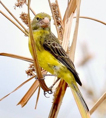 The southern grosbeak canary is endemic to southern Kenya and northern Tanzania. The upper two photo are courtesy of Per Holmen. These photos were taken in Engikaret and Shambarai swamp. Click the left photo above to see 12 enlargements. |