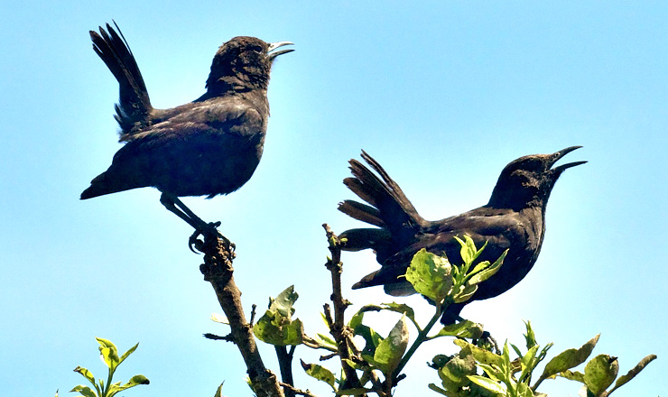 The northern anteater chat is seen in open country of north-central Tanzania. Note the white patch in the primaries, especially in the flight photos. These photos were taken in Naisera, Ngorongoro Crater, Ng'arwa, Lobo, Engusero Sambu--Loliondo and Sweetwaters Game Reserve (Kenya); the 2nd and left 4th row photo are courtesy of Karine Van der Vurst. Click the photo above to see 15 enlargements. |