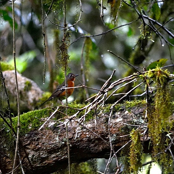 The orange ground-thrush differs from the Abyssinian ground-thrush by having a broken white eye ring and a grey crown. It is found in forest understory at higher altitude. The upper and middle birds above were photographed in the Nou Forest: (upper,10-09; lower, 1-16) and the bottom bird was seen in the Meru Forest (2-23), courtesy of Donyo Gabriel. |