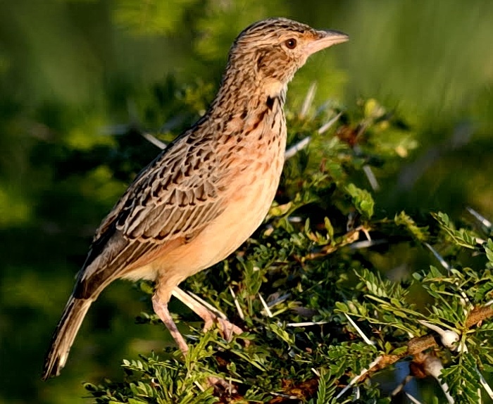 The red-winged lark is a northeast African endemic. It is similar to the sentinal lark, but larger with a longer tail and dark patches to the sides of the lower neck. The lower four photos are courtsy of Isaac Kilusu. All photos were taken in Mkomazi NP. |