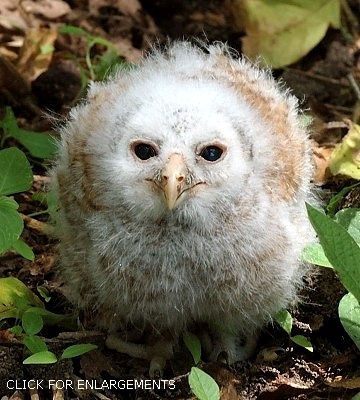 The pair of African wood-owls in these photos has returned to Erwin Kinsey's garden in Ngaramtoni for many years. The 4th row photos (Ngaramtoni, 2-08) are courtesy of Ethan Kinsey. The second row fledge was at Lake Duluti (1-07). The right lower juvenile was in Morogoro (9-23), courtesy of Lily Shallom. The chick above was photographed in Olasiti (11-06); click it to see 8 enlargements. |