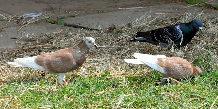 The rock pigeon is an introduced, variable, mainly urban bird that may show black, slate, purple, brown or white colors. These photos were taken in Olasiti. |