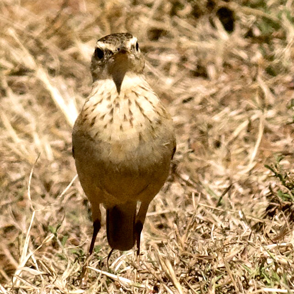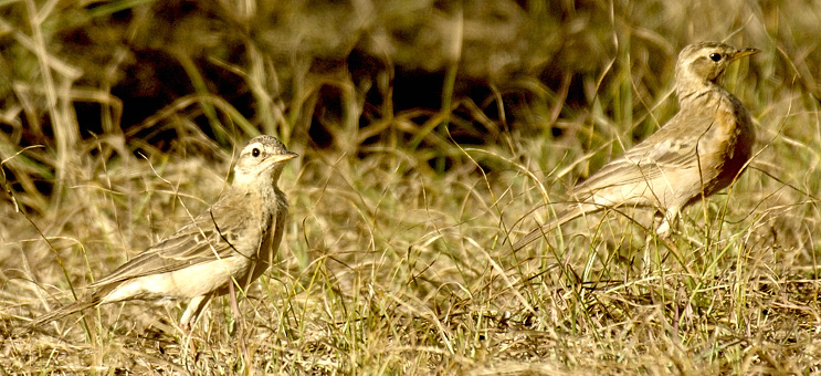 The plain-backed pipit has a plain or slightly marked back, buff colour below, and a yellow or pink lower mandible and is usually seen in short grass. These photos was taken In Ngorongoro Crater, Minziro Forest, Engusero Sambu Forest-Loliondo, Burigi-Chato NP, Ngarwa; click it to see 20 enlargements. |
