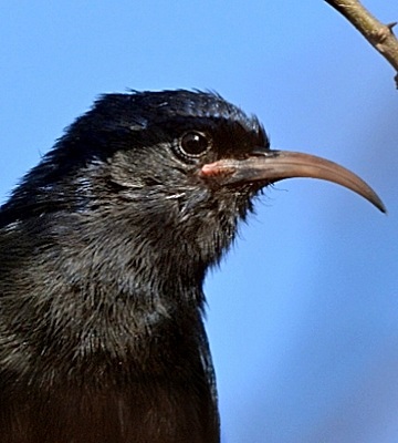 The Abyssinian scimitarbill is a northeast African endemic wood-hoopoe. The orange bill, glossy blue-black color and absence of white in the wings are characteristic. The right upper immature was seen in Napilokonya (8-14); note the brown bill. The other photos were taken in Tarangire (left upper, 12-06; lower four photos, 4-04). Click the photo above to see 9 enlargements. |