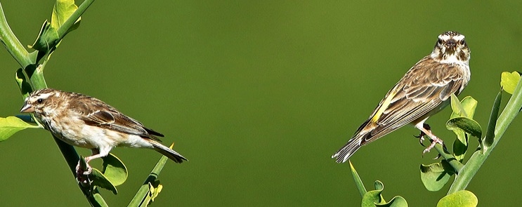 Reichenow's seedeater is a northeast African endemic. The upper bird was seen at Lake Eyasi and the 4th row pair, at Tarangire, both courtesy of Karine Van der Vurst; the 2nd row bird, at Nyang'oro, courtesy of Michael Poulsen; 3rd row, at Lake Manyara, courtesy of Doug McLennan; and the lower bird, at Pangani. Click the photo above to see 9 enlargements. |