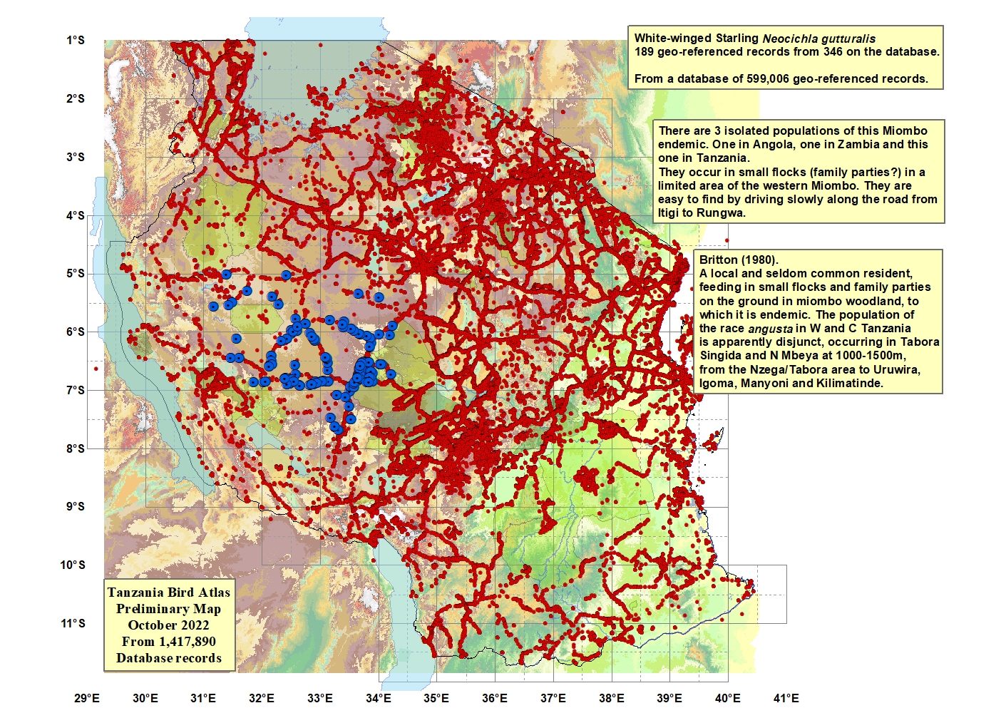 The babb;ing, formerly white-winged, is often easy to find because of its constant babbling. Small flocks occur in central and western Tanzania, see maps. The upper four photos were taken at the Sipa River; the next four, in the Itulu Hills FR, courtesy of Jason Anderson. The bottom bird was seen near Rungwa, courtesy of Per Holmen.