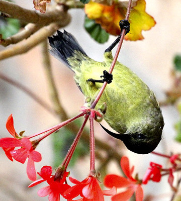 The forest double-collared sunbird, also called Fülleborn's sunbird, was recently split from the double collared sunbird and renamed the forest double-collared sunbird. All of these photos were taken in Mufindi: the upper and the right 2nd row, courtesy of Per Holmen; the middle, courtesy of Robert Barnes; and the lower pair, courtesy of Paul Oliver. Click the left lower photo to see 9 enlargements. |