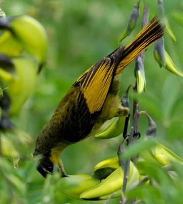 The golden-winged sunbird is an East African endemic, seen at highland forest edge and in gardens. The upper male was seen on the Kinango Plateau, courtesy of Per Holman. The other photos were taken on west Kilimanjaro (right lower) and in Ngorongoro CA. Click the photo above to see 20 enlargements.