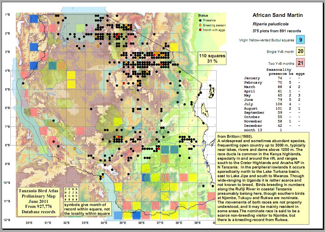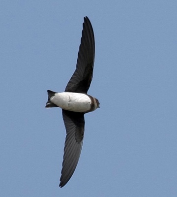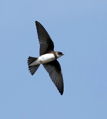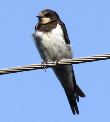The bank swallow, previously called sand martin, is a common palearctic migrant from September to May and may be seen in large flocks. The two upper photos are courtesy of Dr. Louis A. Hansen who noted: "Small to medium size swallow. Off-white underparts, with a dull dark brown breast band and dark underwing coverts (not black)". The left middle photo is courtesy of Valéry Schollaert (Lukuba); the right middle and left lower photos (Kibale NP & Queen Elisabeth NP-Uganda), are courtesy of Karine Van der Vurst; the lower (Lake Baringo-Kenya), courtesy Per Holmen. |