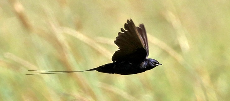 The montane blue swallow is uncommon in montane grasslands in southern Tanzania, with a small population in the northwest. The perched bird (Minziro FR) and the 2nd row fkight photo (Malawi) are courtesy of Per Holmen. The bird with a tuft of white on the flank was seen in Grumeti, courtesy of Paul Kivuyo. The other flight photos were taken in the Mara triangle, courtesy of Adam Scott Kennedy. |