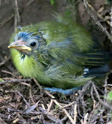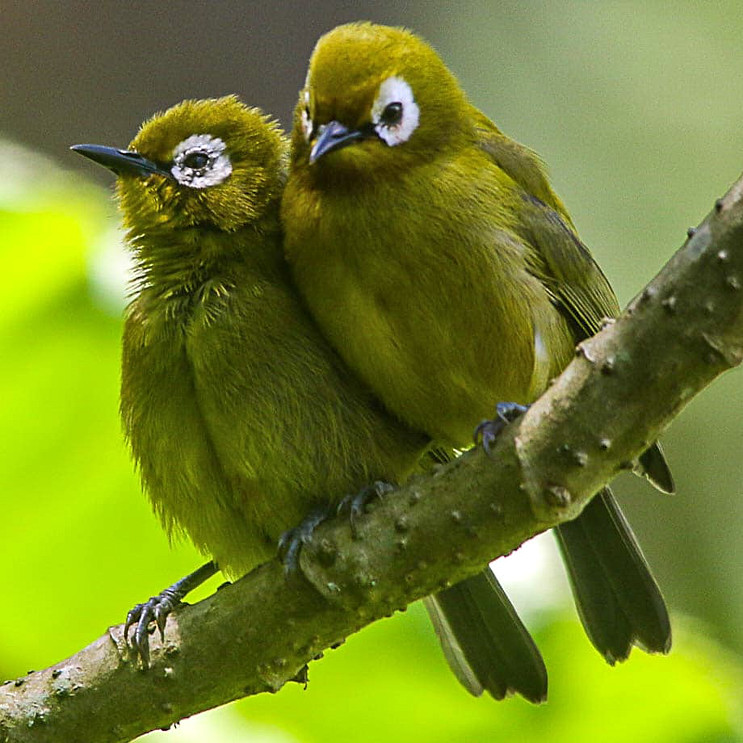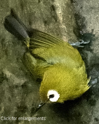 The Kilimanjaro white-eye, formerly called broad-ringed or montane white-eye, is endemic to northern Tanzania including Mts. Meru and Kilimanjaro and Arusha NP. Note the greenish underparts in these photographs taken in Meru forest, Arusha NP and Olasiti. The upper pair is courtesy of Frank Priscus Shirima. The next two photos, the chick and the right lower photo are courtesy of Per Holmen. Click the left lower photo to see 10 enlargements including a nest with newborns.